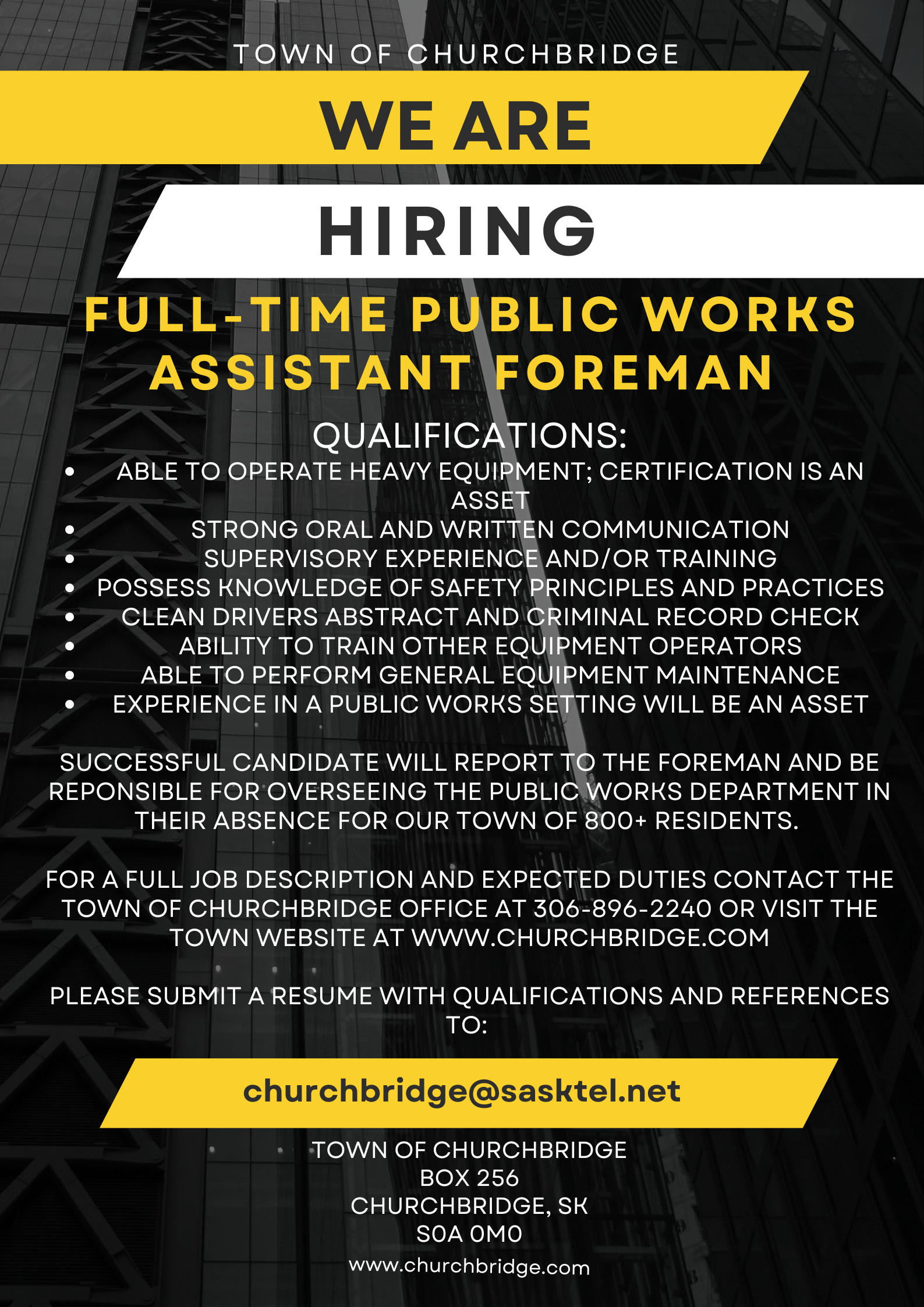 Employment Opportunity – Assistant Foreman