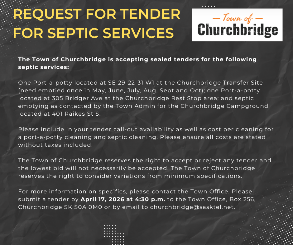 Request For Tender – 2026 Spring/Summer Septic Services